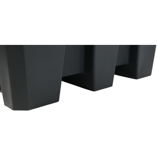 Korrózióálló újrahasznosított polietilén anyag. Nagyon ellenáll számos vegyszernek. Tartós és robusztus, teljesen UV-védett. Kétoldali villatávolság a raklapemelő targoncához és a kocsihoz. Helyezzen be tárolórekeszt.