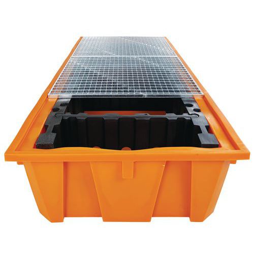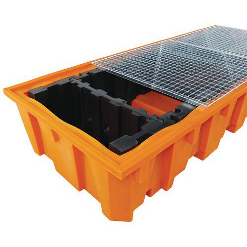 Manutan Expert műanyag kármentő tálca, űrtartalma 1 650 l, fémráccsal Manutan Expert műanyag kármentő tálca, űrtartalma 1 650 l, fémráccsal