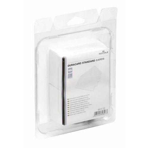 Üres műanyag kártyák Duracard ID 300 címkenyomtatóhoz. 100 kártyacsomag CR 80 formátumban: 85,60 x 53,98 mm.