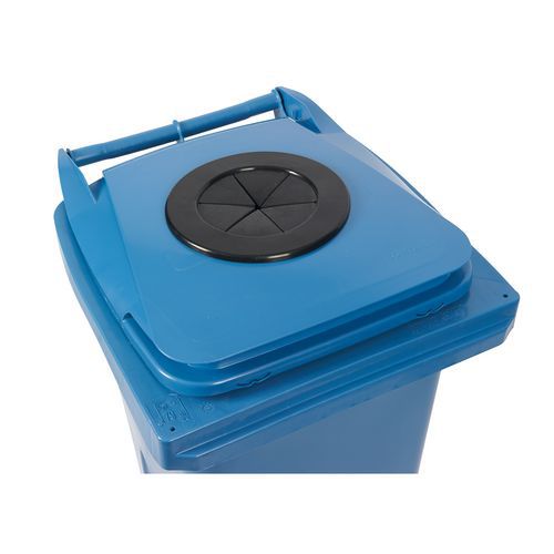 Műanyag kültéri konténer szelektív hulladékgyűjtésre nyílással, űrtartalom 120 l