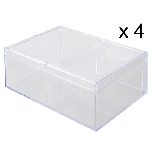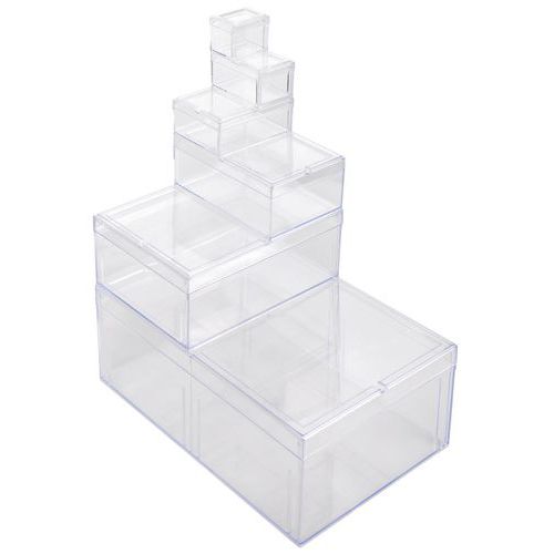 Az átlátszó anyag biztosítja a termék tökéletes láthatóságát. UV-álló anyagból készült. A dobozok egymásra rakhatók a helytakarékosság érdekében. Maximális belső térfogatkihasználás a téglalap alakú falaknak köszönhetően.