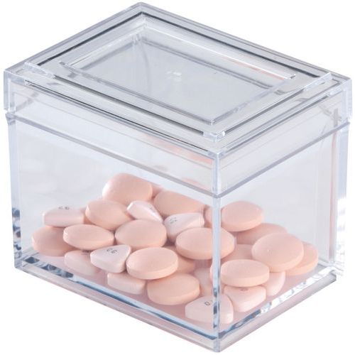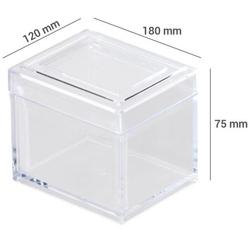 Az átlátszó anyag biztosítja a termék tökéletes láthatóságát. UV-álló anyagból készült. A dobozok egymásra rakhatók a helytakarékosság érdekében. Maximális belső térfogatkihasználás a téglalap alakú falaknak köszönhetően.