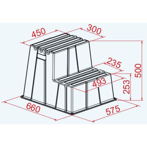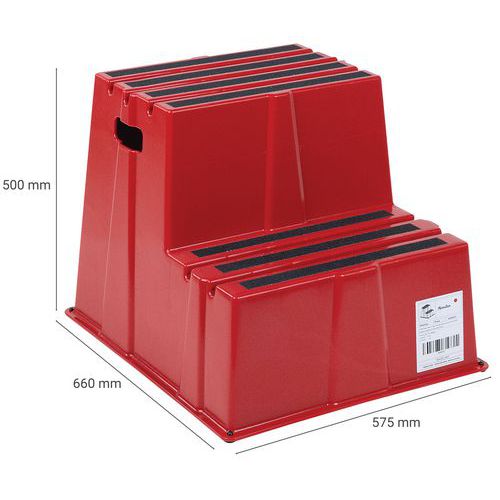 Műanyag munkahelyi lépcsők Manutan Expert, piros, 2 fok Műanyag munkahelyi lépcsők Manutan Expert, piros, 2 fok