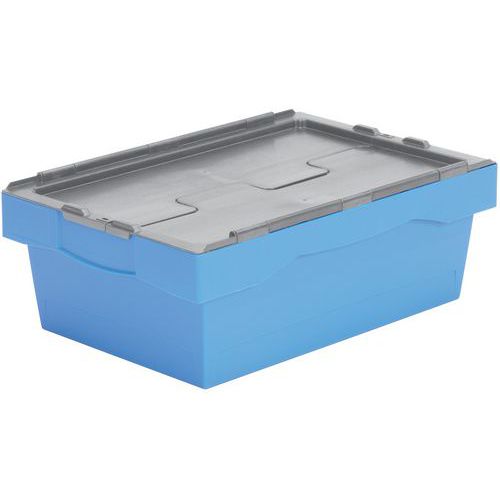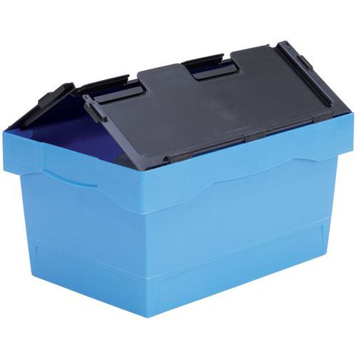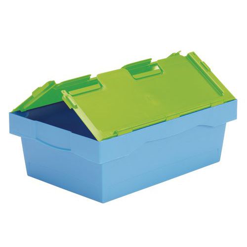 A logisztikai folyamatok azonosítását színkódos fedelek segítik. Többcélú, kézi és automatizált kezelésre is alkalmas. A tartalom zárható és zárható fedéllel van rögzítve. Az üres konténerek egymásra rakhatók és egymásra rakhatók a helytakarékosság érdekében. Gyártói garancia az ügyfélnek : 3 év Max. terhelés (kg) : 25