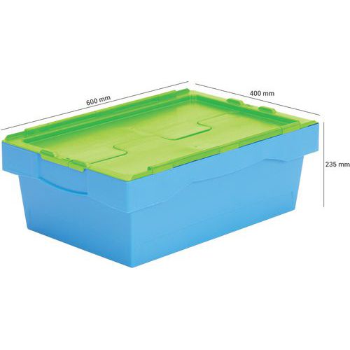 A logisztikai folyamatok azonosítását színkódos fedelek segítik. Többcélú, kézi és automatizált kezelésre is alkalmas. A tartalom zárható és zárható fedéllel van rögzítve. Az üres konténerek egymásra rakhatók és egymásra rakhatók a helytakarékosság érdekében. Max. terhelés (kg) : 25 kg Gyártói garancia az ügyfélnek : 3 év