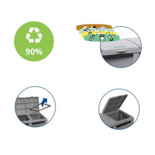 | Termék neve | ECO LINE szelektív hulladékgyűjtő szekrény , 3 × 110 l, kültéri/beltéri, szürke |