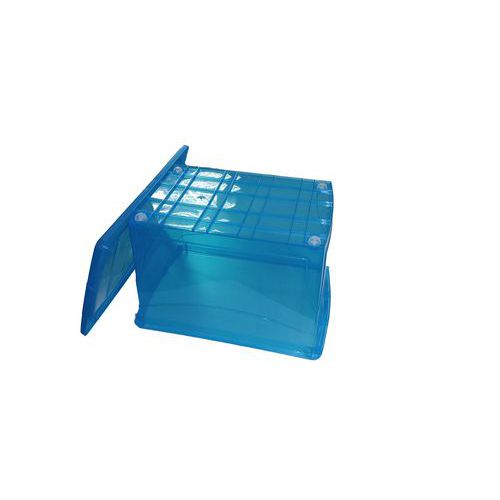 Multifunkciós tároldódobozok kék színű fedéllel. Az átlátszó anyag lehetővé teszi a benne tárolt tárgyak áttekintését a felnyitás igénye nélkül. A dobozok egymásra rakhatók. Az 50 és 60 literes dobozok levehető görgőkkel vannak felszerelve a jobb mozgathatóságért.