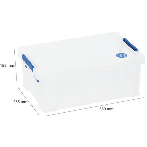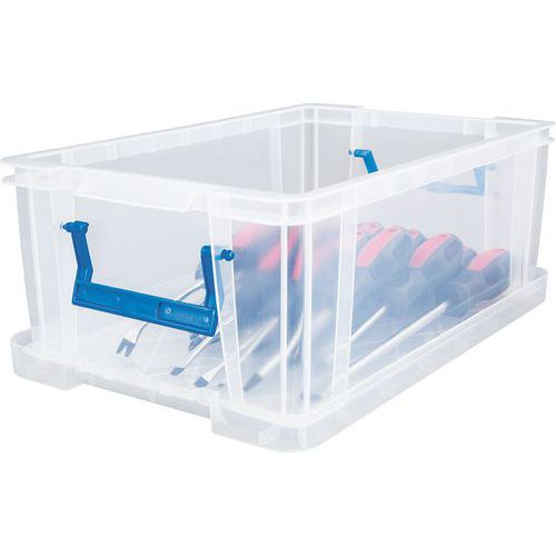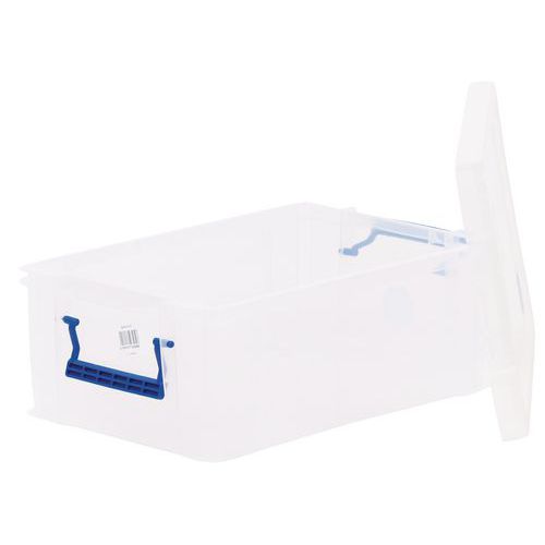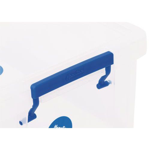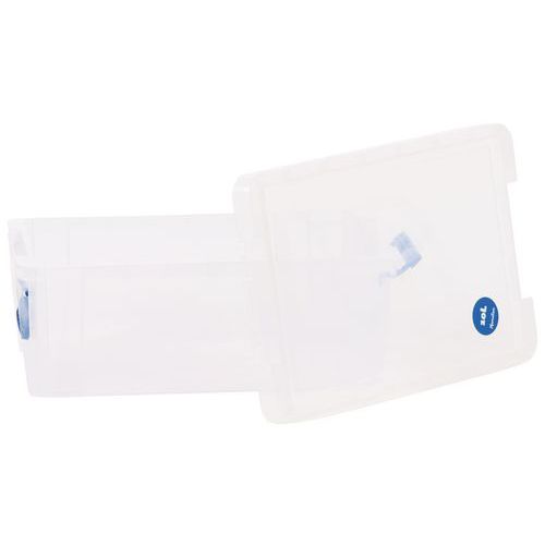 Műanyag tárolódobozok univerzális felhasználásra. Átlátszó anyag miatt könnyen láthatók a benne tárolt anyagok, és nem szükséges a kinyitásuk. A fogantyúk egyúttal zárókapocsként is szolgálnak. Egyszerű tárolás, a dobozok rakásolhatók.