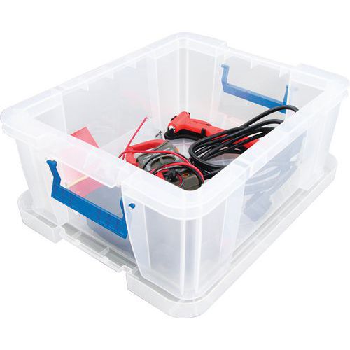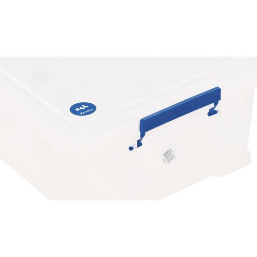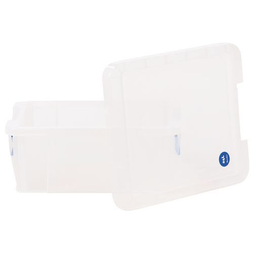 Műanyag tárolódobozok univerzális felhasználásra. Átlátszó anyag miatt könnyen láthatók a benne tárolt anyagok, és nem szükséges a kinyitásuk. A fogantyúk egyúttal zárókapocsként is szolgálnak. Egyszerű tárolás, a dobozok rakásolhatók.