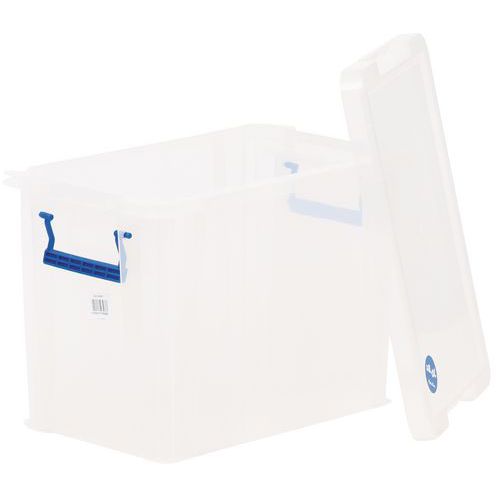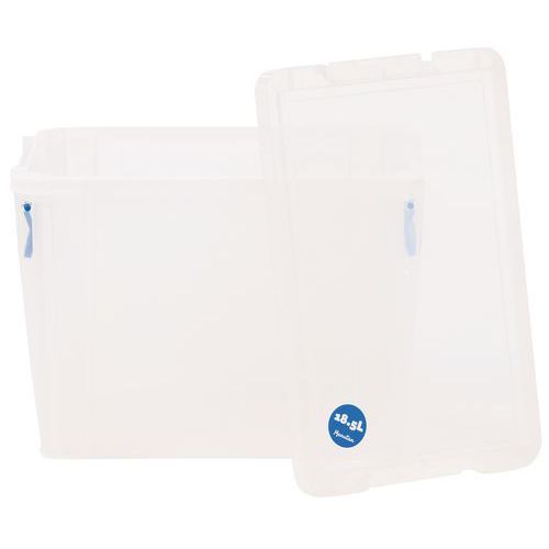 Műanyag tárolódobozok univerzális felhasználásra. Átlátszó anyag miatt könnyen láthatók a benne tárolt anyagok, és nem szükséges a kinyitásuk. A fogantyúk egyúttal zárókapocsként is szolgálnak. Egyszerű tárolás, a dobozok rakásolhatók.