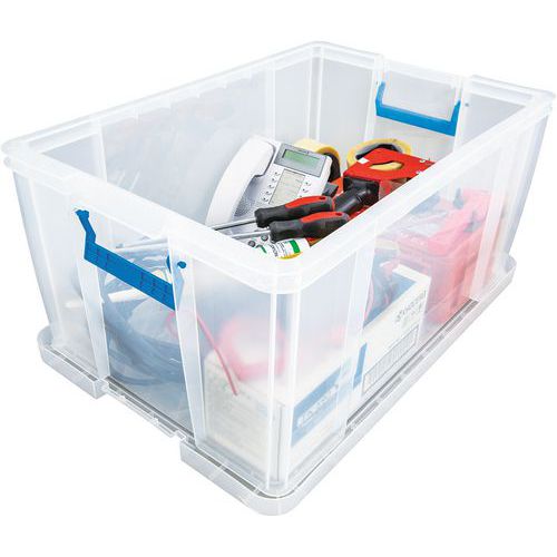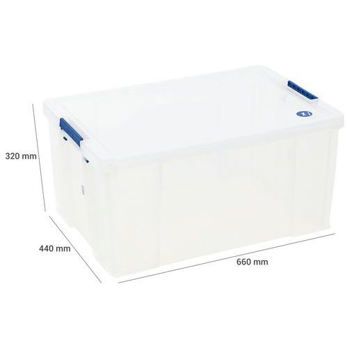Műanyag tárolódobozok univerzális felhasználásra. Átlátszó anyag miatt könnyen láthatók a benne tárolt anyagok, és nem szükséges a kinyitásuk. A fogantyúk egyúttal zárókapocsként is szolgálnak. Egyszerű tárolás, a dobozok rakásolhatók.