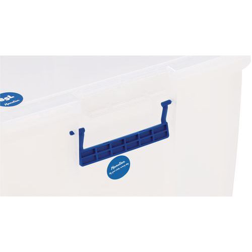 Műanyag tárolódobozok univerzális felhasználásra. Átlátszó anyag miatt könnyen láthatók a benne tárolt anyagok, és nem szükséges a kinyitásuk. A fogantyúk egyúttal zárókapocsként is szolgálnak. Egyszerű tárolás, a dobozok rakásolhatók. Max. terhelés (kg) : 200 kg NSF-tanúsítvány