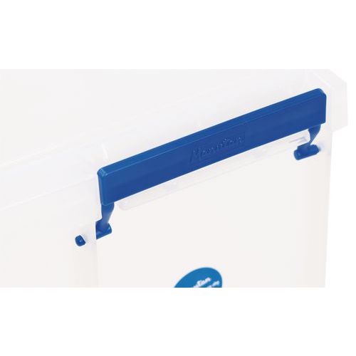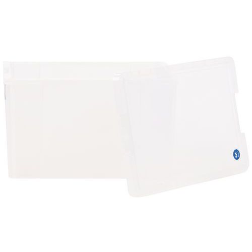 Műanyag tárolódobozok univerzális felhasználásra. Átlátszó anyag miatt könnyen láthatók a benne tárolt anyagok, és nem szükséges a kinyitásuk. A fogantyúk egyúttal zárókapocsként is szolgálnak. Egyszerű tárolás, a dobozok rakásolhatók.
