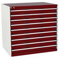 Műhely fiókos szekrény Bott Cubio, 100 x 105 x 75 cm, 9 fiókos, szürke-piros Műhely fiókos szekrény Bott Cubio, 100 x 105 x 75 cm, 9 fiókos, szürke-piros