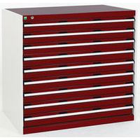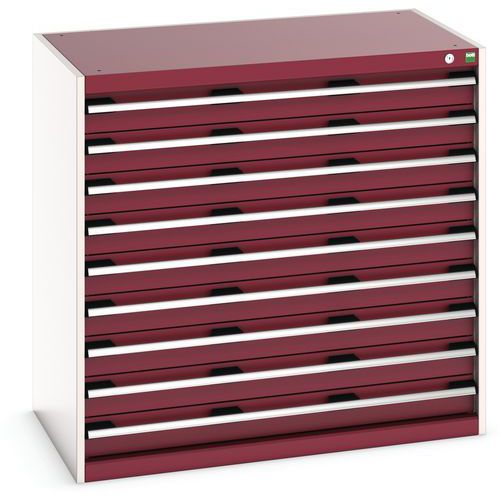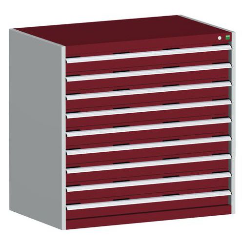 Műhely fiókos szekrény Bott Cubio, 100 x 105 x 65 cm, 9 fiókos, szürke-piros Műhely fiókos szekrény Bott Cubio, 100 x 105 x 65 cm, 9 fiókos, szürke-piros