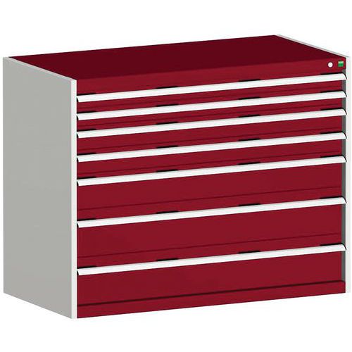Műhely fiókos szekrény Bott Cubio, 100 x 130 x 75 cm, 7 fiókos, szürke-piros Műhely fiókos szekrény Bott Cubio, 100 x 130 x 75 cm, 7 fiókos, szürke-piros