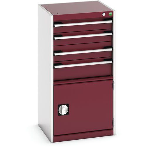 Műhely fiókos szekrény Bott Cubio, 100 x 52,5 x 52,5 cm, 4 fiók, 1 szekrény, szürke-piros Műhely fiókos szekrény Bott Cubio, 100 x 52,5 x 52,5 cm, 4 fiók, 1 szekrény, szürke-piros