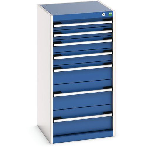 Műhely fiókos szekrény Bott Cubio, 100 x 52,5 x 52,5 cm, 7 fiókos, szürke-kék Műhely fiókos szekrény Bott Cubio, 100 x 52,5 x 52,5 cm, 7 fiókos, szürke-kék