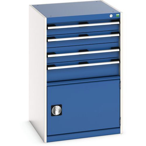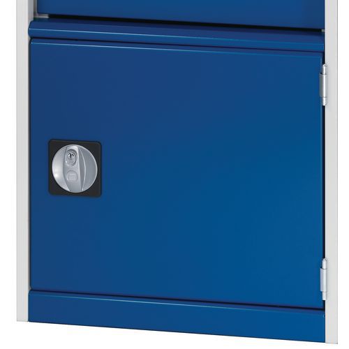 Műhely fiókos szekrény Bott Cubio, 100 x 65 x 65 cm, 4 fiók, 1 szekrény, szürke-kék Műhely fiókos szekrény Bott Cubio, 100 x 65 x 65 cm, 4 fiók, 1 szekrény, szürke-kék