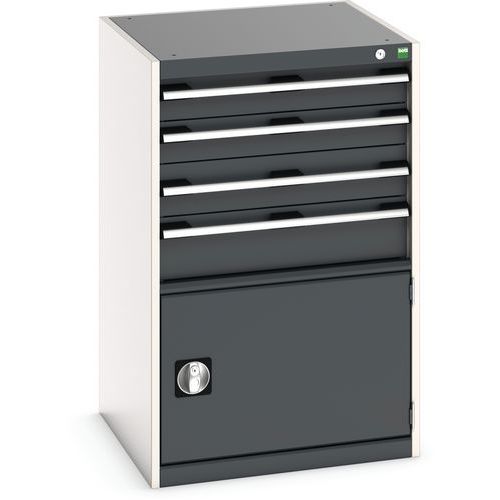 Műhely fiókos szekrény Bott Cubio, 100 x 65 x 65 cm, 4 fiók, 1 szekrény, szürke-antracit Műhely fiókos szekrény Bott Cubio, 100 x 65 x 65 cm, 4 fiók, 1 szekrény, szürke-antracit
