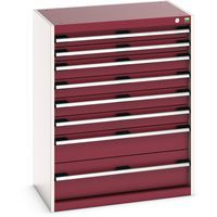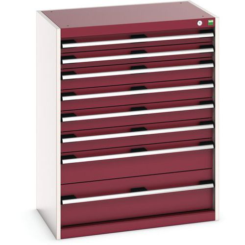 Műhely fiókos szekrény Bott Cubio, 100 x 80 x 52,5 cm, 8 fiókos, szürke-piros Műhely fiókos szekrény Bott Cubio, 100 x 80 x 52,5 cm, 8 fiókos, szürke-piros