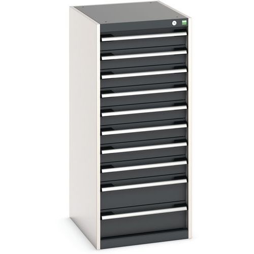 Bott Cubio fiókos szekrények 75 kg-os teherbírású, görgőscsapágyakon 100%-ban bővíthető fiókokkal. Magas hegesztett acélszerkezet, akár 1,5 tonna teherbírással, porszórt bevonattal. Központi zárrendszer és több nyitás blokkolása fiókok egyszerre. Ergonomikus fogantyúk feliratos szalaggal, zárás hengerzárral két kulccsal.
