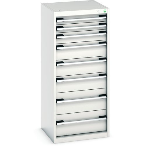 Bott Cubio fiókos szekrények 75 kg-os teherbírású, görgőscsapágyakon 100%-ban bővíthető fiókokkal. Magas hegesztett acélszerkezet, akár 1,5 tonna teherbírással, porszórt bevonattal. Központi zárrendszer és több nyitás blokkolása fiókok egyszerre. Ergonomikus fogantyúk feliratos szalaggal, zárás hengerzárral két kulccsal.