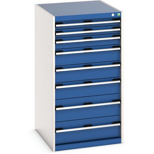 Bott Cubio fiókos szekrények 75 kg-os teherbírású, görgőscsapágyakon 100%-ban bővíthető fiókokkal. Magas hegesztett acélszerkezet, akár 1,5 tonna teherbírással, porszórt bevonattal. Központi zárrendszer és több nyitás blokkolása fiókok egyszerre. Ergonomikus fogantyúk feliratos szalaggal, zárás hengerzárral két kulccsal.