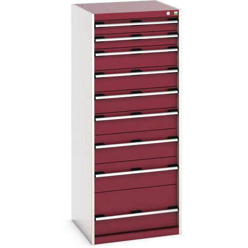 Műhely fiókos szekrény Bott Cubio, 160 x 65 x 65 cm, 9 fiókos, szürke-piros Műhely fiókos szekrény Bott Cubio, 160 x 65 x 65 cm, 9 fiókos, szürke-piros