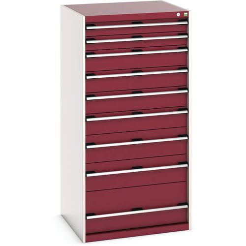 Bott Cubio fiókos szekrények 75 kg-os teherbírású, görgőscsapágyakon 100%-ban bővíthető fiókokkal. Magas hegesztett acélszerkezet, akár 1,5 tonna teherbírással, porszórt bevonattal. Központi zárrendszer és több nyitás blokkolása fiókok egyszerre. Ergonomikus fogantyúk feliratos szalaggal, zárás hengerzárral két kulccsal.