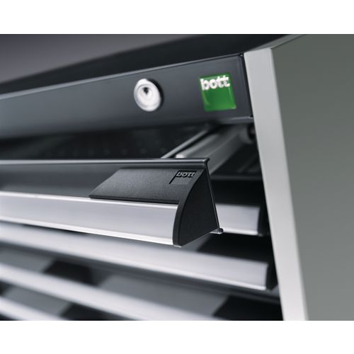 Bott Cubio fiókos szekrények 200 kg teherbírású fiókokkal és 100%-ban görgős csapágyakkal bővíthető. Magas hegesztett acél konstrukció 1,5 tonna teherbírásig, porszórt bevonattal. Központi zárrendszer és több nyitás blokkolása fiókok egyszerre. Ergonomikus fogantyúk feliratos szalaggal, zárás hengerzárral két kulccsal.