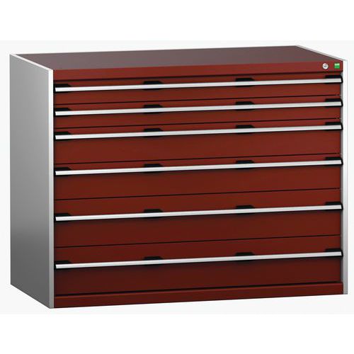 Műhely fiókos szekrény Bott Cubio 200, 100 x 130 x 75 cm, 6 fiókos, szürke-piros Műhely fiókos szekrény Bott Cubio 200, 100 x 130 x 75 cm, 6 fiókos, szürke-piros