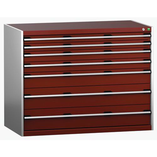 Műhely fiókos szekrény Bott Cubio 200, 100 x 130 x 75 cm, 7 fiókos, szürke-piros Műhely fiókos szekrény Bott Cubio 200, 100 x 130 x 75 cm, 7 fiókos, szürke-piros