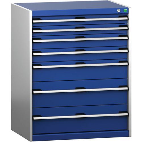 Műhely fiókos szekrény Bott Cubio 200, 100 x 80 x 65 cm, 7 fiókos, szürke-kék Műhely fiókos szekrény Bott Cubio 200, 100 x 80 x 65 cm, 7 fiókos, szürke-kék