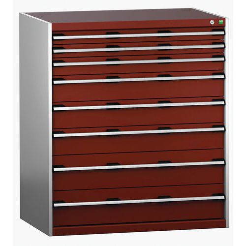 Műhely fiókos szekrény Bott Cubio 200, 120 x 105 x 75 cm, 8 fiókos, szürke-piros Műhely fiókos szekrény Bott Cubio 200, 120 x 105 x 75 cm, 8 fiókos, szürke-piros