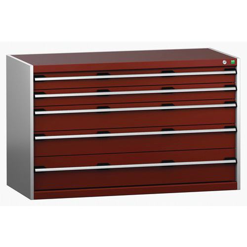 Műhely fiókos szekrény Bott Cubio 200, 80 x 130 x 65 cm, 5 fiókos, szürke-piros Műhely fiókos szekrény Bott Cubio 200, 80 x 130 x 65 cm, 5 fiókos, szürke-piros