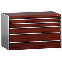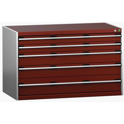 Műhely fiókos szekrény Bott Cubio 200, 80 x 130 x 75 cm, 5 fiókos, szürke-piros Műhely fiókos szekrény Bott Cubio 200, 80 x 130 x 75 cm, 5 fiókos, szürke-piros