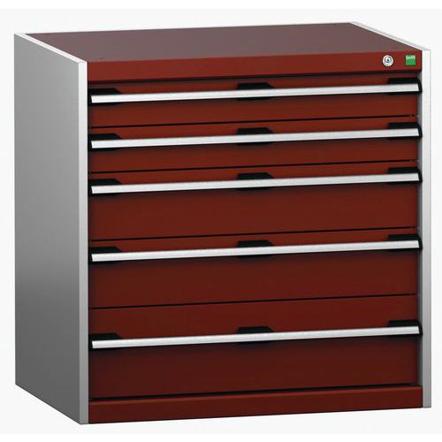 Műhely fiókos szekrény Bott Cubio 200, 80 x 80 x 65 cm, 5 fiókos, szürke-piros Műhely fiókos szekrény Bott Cubio 200, 80 x 80 x 65 cm, 5 fiókos, szürke-piros