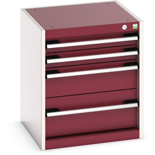 Műhely fiókos szekrény Bott Cubio, 60 x 52,5 x 52,5 cm, 4 fiókos, szürke-piros Műhely fiókos szekrény Bott Cubio, 60 x 52,5 x 52,5 cm, 4 fiókos, szürke-piros