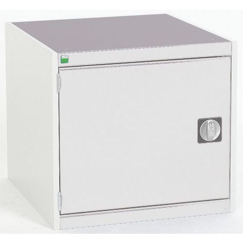 Bott Cubio fiókos szekrények horganyzott polccal, 100 kg teherbírással. Szekrényajtó perforált belső oldallal a szerszámok tárolására. Magas hegesztett acél konstrukció 1,5 tonna teherbírással, porszórt kivitelben. Zárás egy hengerzár két kulccsal.