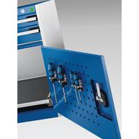 Bott Cubio fiókos szekrények 75 kg-os teherbírású és 100%-os görgőscsapágyakkal bővíthető fiókokkal. Szekrényajtó perforált belső oldallal a szerszámok tárolására. Magas hegesztett acél konstrukció akár 1,5 tonna teherbírással, porszórt bevonattal befejezni. Központi zárrendszerű zár és egyidejűleg több fiók nyitásának blokkolása. Ergonomikus fogantyúk írható csíkkal, zárás hengeres zárral, két kulccsal.