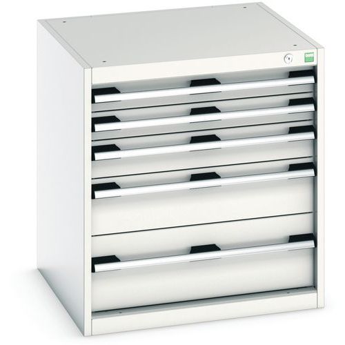 Bott Cubio fiókos szekrények 75 kg-os teherbírású, görgőscsapágyakon 100%-ban bővíthető fiókokkal. Magas hegesztett acélszerkezet, akár 1,5 tonna teherbírással, porszórt bevonattal. Központi zárrendszer és több nyitás blokkolása fiókok egyszerre. Ergonomikus fogantyúk feliratos szalaggal, zárás hengerzárral két kulccsal.