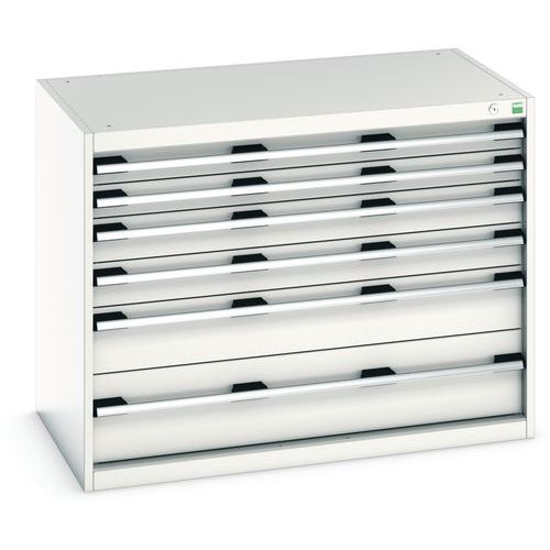 Bott Cubio fiókos szekrények 75 kg-os teherbírású, görgőscsapágyakon 100%-ban bővíthető fiókokkal. Magas hegesztett acélszerkezet, akár 1,5 tonna teherbírással, porszórt bevonattal. Központi zárrendszer és több nyitás blokkolása fiókok egyszerre. Ergonomikus fogantyúk feliratos szalaggal, zárás hengerzárral két kulccsal.