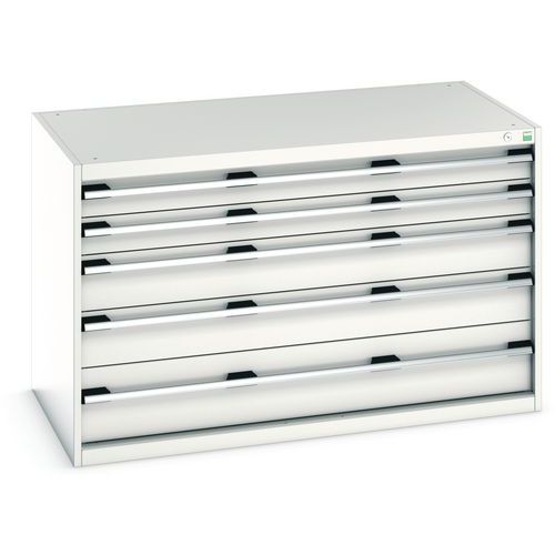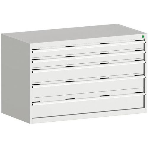 Bott Cubio fiókos szekrények 75 kg-os teherbírású, görgőscsapágyakon 100%-ban bővíthető fiókokkal. Magas hegesztett acélszerkezet, akár 1,5 tonna teherbírással, porszórt bevonattal. Központi zárrendszer és több nyitás blokkolása fiókok egyszerre. Ergonomikus fogantyúk feliratos szalaggal, zárás hengerzárral két kulccsal.