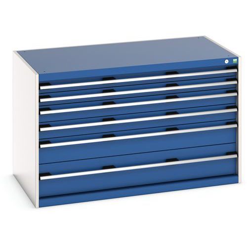Műhely fiókos szekrény Bott Cubio, 80 x 130 x 75 cm, 6 fiókos, szürke-kék