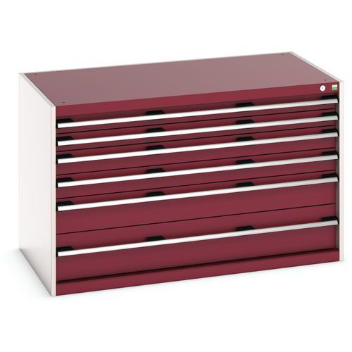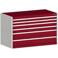 Műhely fiókos szekrény Bott Cubio, 80 x 130 x 75 cm, 6 fiókos, szürke-piros
