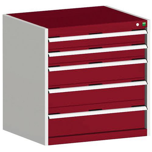 Műhely fiókos szekrény Bott Cubio, 80 x 80 x 52,5 cm, 5 fiókos, szürke-piros Műhely fiókos szekrény Bott Cubio, 80 x 80 x 52,5 cm, 5 fiókos, szürke-piros