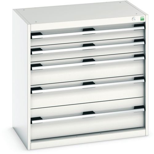 Bott Cubio fiókos szekrények 75 kg-os teherbírású, görgőscsapágyakon 100%-ban bővíthető fiókokkal. Magas hegesztett acélszerkezet, akár 1,5 tonna teherbírással, porszórt bevonattal. Központi zárrendszer és több nyitás blokkolása fiókok egyszerre. Ergonomikus fogantyúk feliratos szalaggal, zárás hengerzárral két kulccsal.