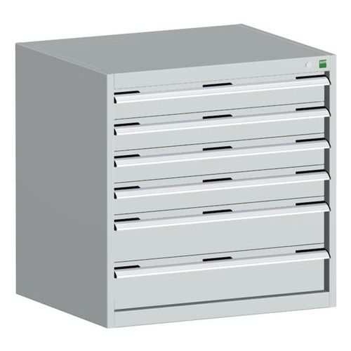 Bott Cubio fiókos szekrények 75 kg-os teherbírású, görgőscsapágyakon 100%-ban bővíthető fiókokkal. Magas hegesztett acélszerkezet, akár 1,5 tonna teherbírással, porszórt bevonattal. Központi zárrendszer és több nyitás blokkolása fiókok egyszerre. Ergonomikus fogantyúk feliratos szalaggal, zárás hengerzárral két kulccsal.