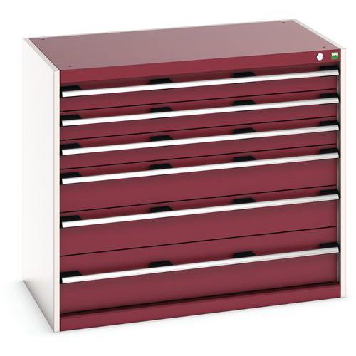 Műhely fiókos szekrény Bott Cubio, 90 x 105 x 65 cm, 6 fiókos, szürke-piros Műhely fiókos szekrény Bott Cubio, 90 x 105 x 65 cm, 6 fiókos, szürke-piros